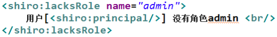 | <shiro:lacksRole name=”abc”> | 没有角色 abc | ![]() |