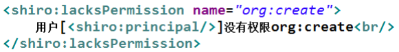 | <shiro:lacksPermission name=”abc”> | 没有 abc 权限资源 | ![]() |