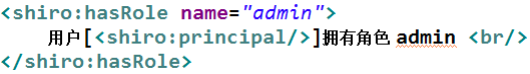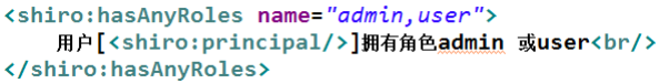 | <shiro:hasRole name=”abc”> | 拥有角色 abc | ![]() |