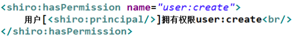 | <shiro:hasPermission name=”abc”> | 拥有权限资源 abc | ![]() |