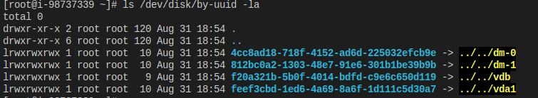 ls /dev/disk/by-uuid -la