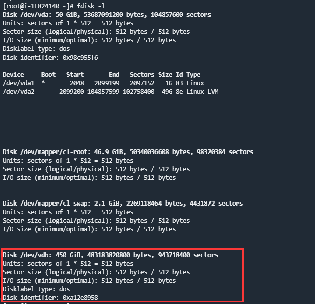 可以看到 /dev/vdb 就是需要挂载的磁盘